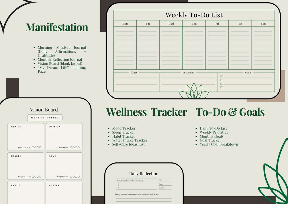 Designed with soft green tones and a minimal layout that’s easy on the eyes and printer-friendly. Whether you're building new habits or just getting things back on track, this planner makes it easy to stay focused and motivated.
